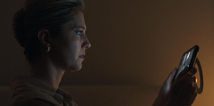 Caitlin Morales, interpretada con una delicada ambigüedad por Mary Elizabeth Winstead, es presentada como la abogada impecable, la madre diligente, la mujer que ha convertido su casa en una burbuja aséptica para sus hijas. Pero la llegada de Polly Murphy —una Maika Monroe casi espectral, hecha de silencios y miradas que rasgan— pone en evidencia la fragilidad de ese mundo cuidadosamente compuesto.