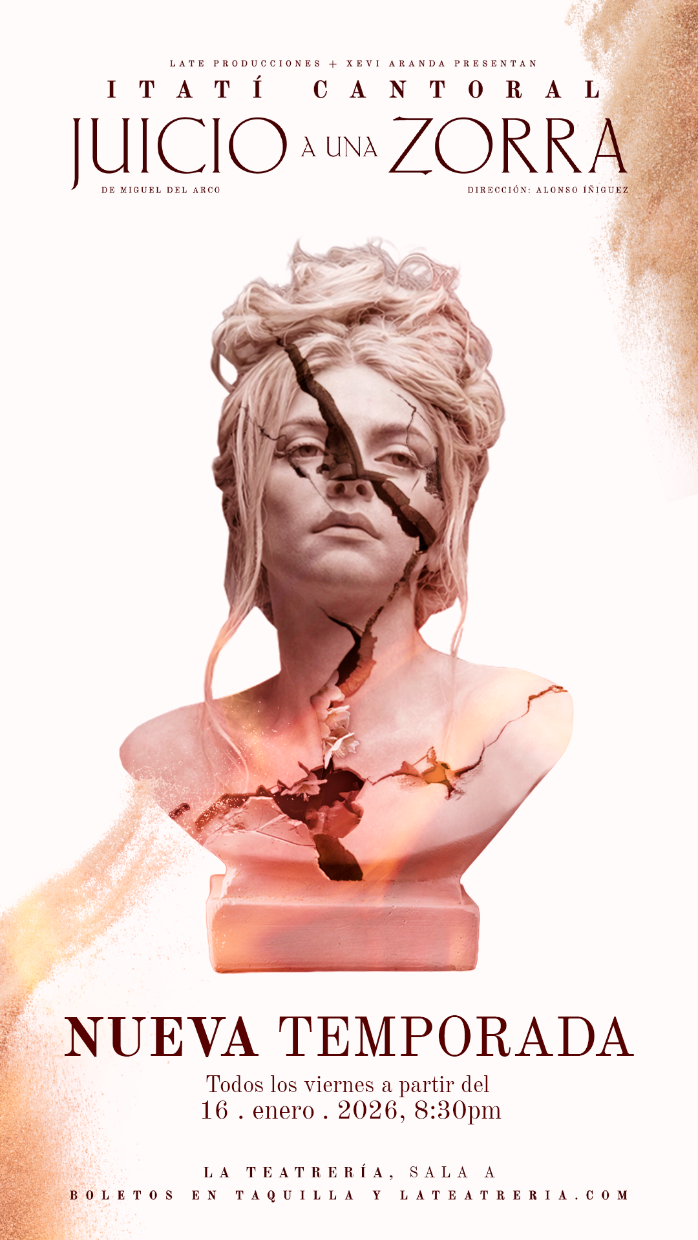 Después de dos temporadas durante 2025 marcadas por funciones agotadas, entusiasmo sostenido y una respuesta contundente del público —y de la crítica especializada—, “Juicio a una zorra” confirma su esperado regreso en 2026. El montaje vuelve a La Teatrería como uno de los títulos más comentados de la cartelera contemporánea, reafirmando su lugar como un referente del teatro actual.